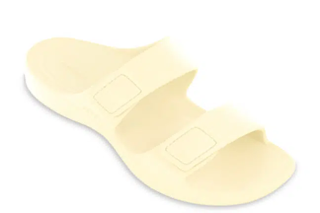 Your journey to refined comfort begins with the Aetrex® Kaia in Ivory. Designed with Aetrex Orthotic Technology, this chic slide enhances support, balance, and alignment with every step. The UltraSky™ EVA footbed cushions your feet for a cloud-like feel, while the lightweight PU upper adds durability and a sleek touch. Slip-on ease meets adjustable straps, giving you a custom fit without the fuss. A slightly raised heel and contoured footbed offer a modern silhouette, perfect for beach strolls, brunch dates, or casual outings. Available in Ivory (Style: Kaia Ivory, ST9303).