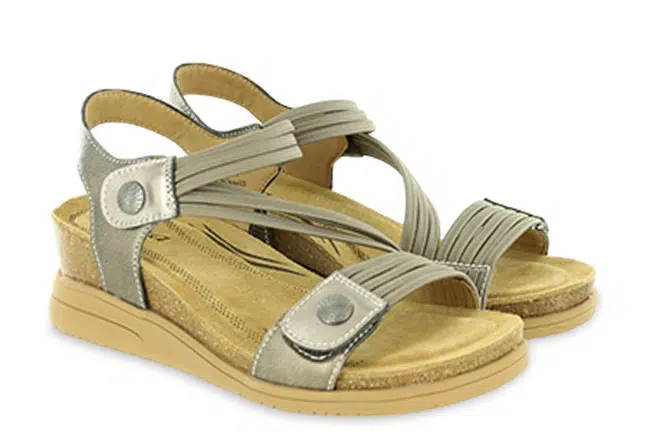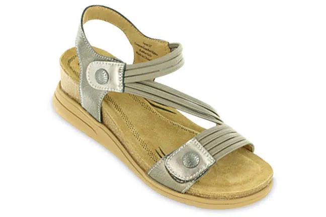 Chic, supportive, and ready to go—the Saint Sandal by Biza is your new favorite travel companion. With sleek elastic and leather uppers, cushioned memory foam, and an EVA-cork wedge, it’s made for walking in style. Dress it up or down for versatile wear anywhere you go. 4034-922