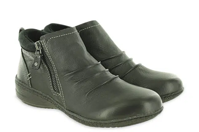 Elevate your everyday style with the Dakota bootie by Biza Shoes—a perfect blend of fashion and function. Designed for all-day comfort, this lightweight walking boot features a soft memory foam cushioned insole, plush velour lining, and an easy-to-use interior side zipper. The charming pleat detailing adds a touch of elegance. The Dakota bootie is your go-to for effortless style and comfort. 6038018 in Midnight.