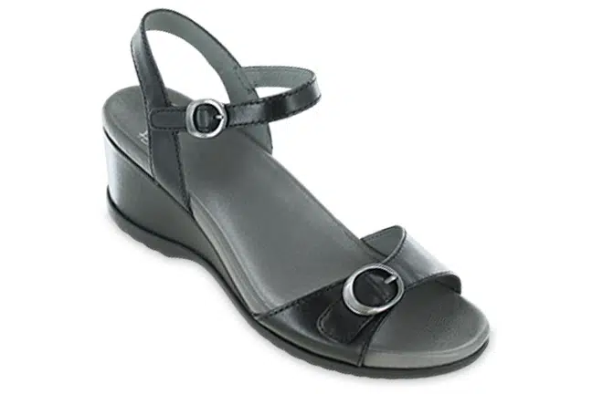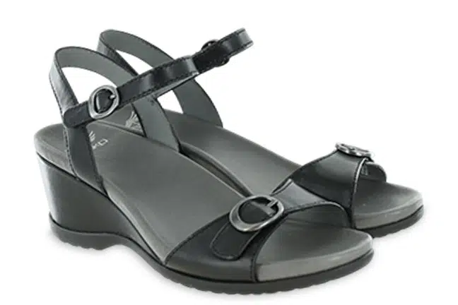 Step into effortless elegance with the Dansko Arielle Wedge Sandal—the perfect blend of style and comfort for warm-weather days. Featuring sleek, buckled leather straps with a refined glazed finish, this two-piece sandal offers a sophisticated touch to any outfit. Designed with a supportive wedge heel, memory foam cushioning, and a durable rubber sole, it provides all-day comfort without compromising on style. Elevate your look with the Arielle and walk with confidence, wherever the season takes you. 1613-500200