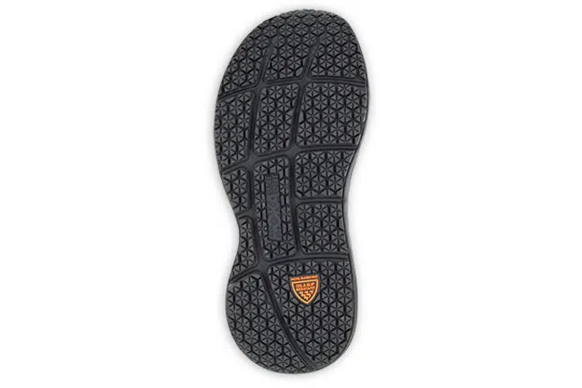 - Outsole features a slip-resistant rubber and a tread designed to optimize traction on a variety of surfaces