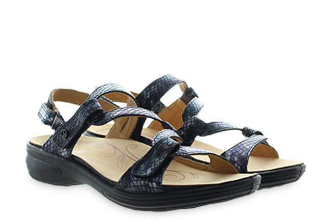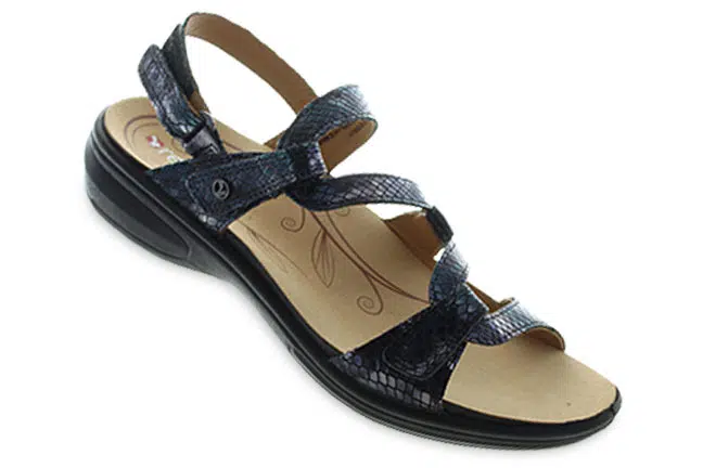 This 3 strap sandal has both narrow and wide widths and a molded footbed that can be easily removed to fit your orthotics, AFO’s or braces.